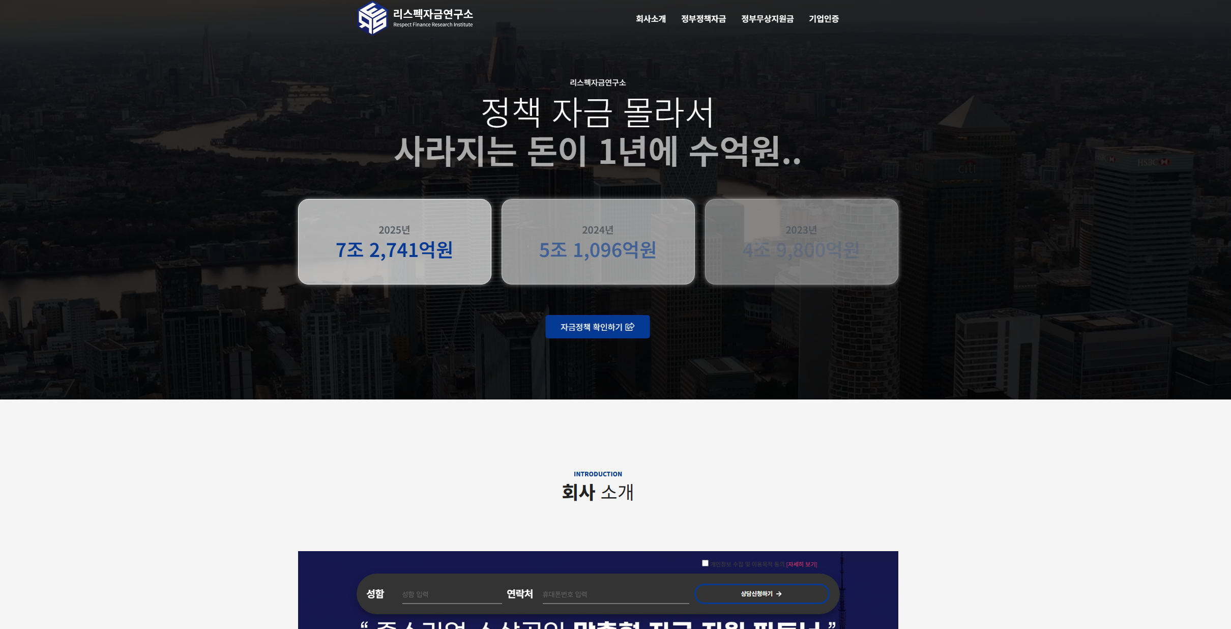 정책자금 컨설팅 홈페이지